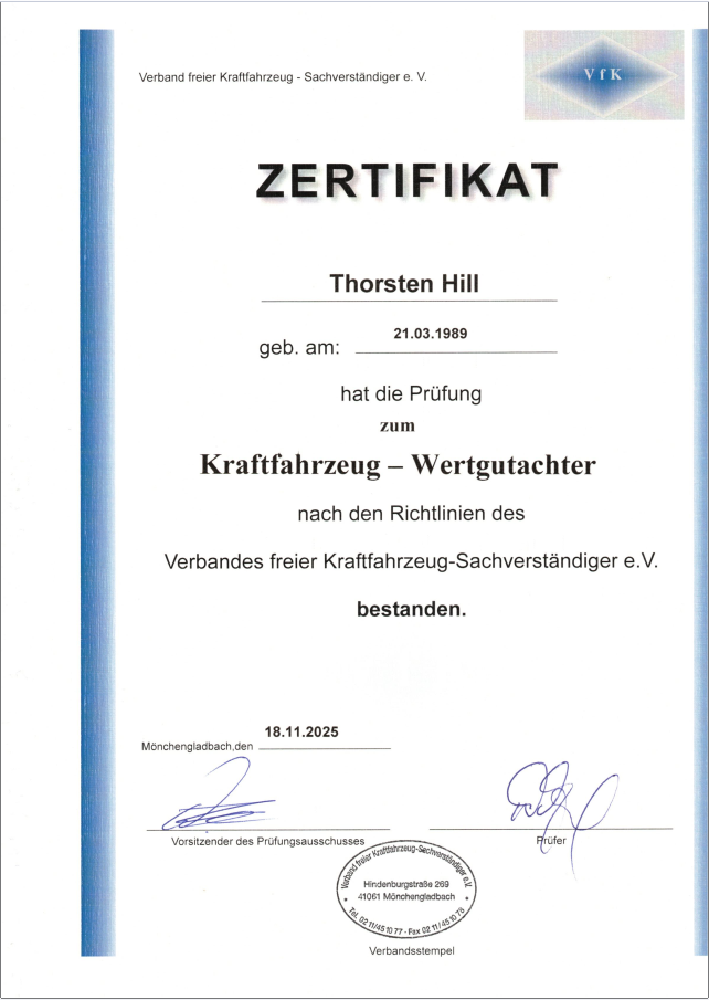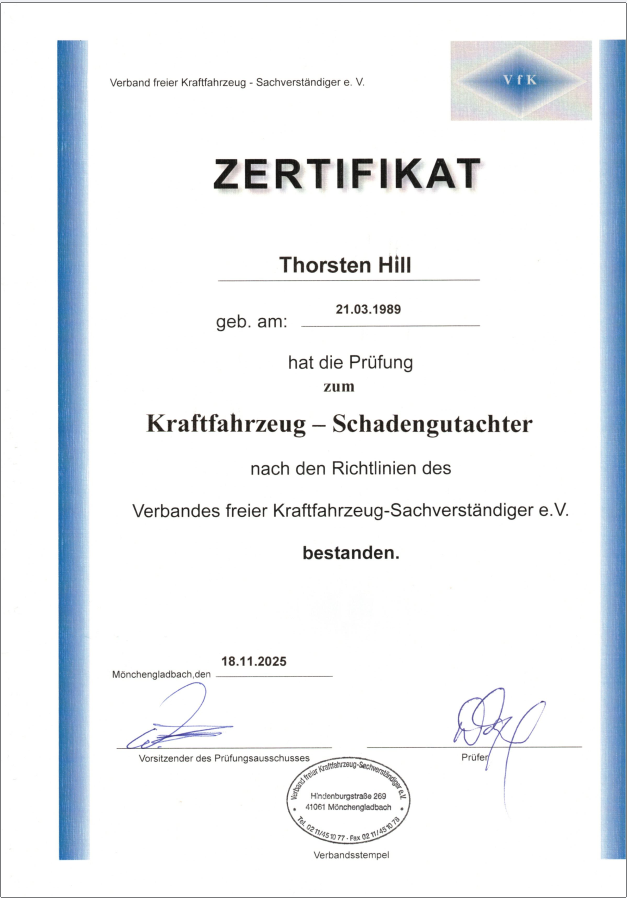 Thorsten Hill - freier & unabhängiger KFZ-Sachverständiger